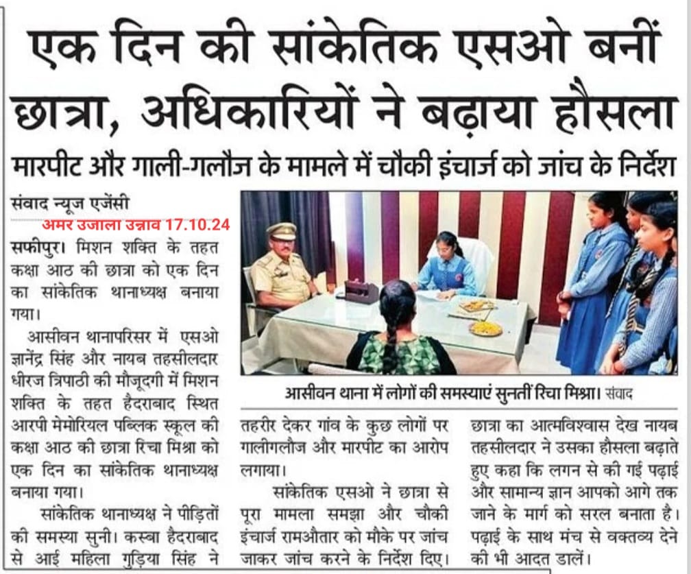 जनपद में थाना छपरौली क्षेत्रान्तर्गत मिशन शक्ति अभियान के तहत महिलाओं एवं बालिकाओं की गोष्ठी की गयी तथा उन्हें हेल्पलाइन नंबरों जैसे-1090 वूमेन पावर लाईन , 181 महिला हेल्पलाईन नंबर, 1076 मुख्यमंत्री हेल्पलाइन नम्बर ,102 स्वास्थ्य सेवा हेल्पलाइन नम्बर, 108 पुलिस आपातकालीन, 1930 साइबर हेल्पलाइन नंबर तथा थाने में स्थापित महिला हेल्पडैस्क की जानकारी दी गयी तथा उनकी समस्याओं को सुना गया तथा उन्हें सशक्त होने के लिये प्रेरित किया गया है। महिला अपराध से सम्बंधित पीडिताओं को जिला विधिक सेवा प्राधिकरण से सम्बंधित पैन्ल्ड अधिवक्ताओं से सहायता प्राप्त करने के बारे में बताया गया तथा महिलाओं को सरकार की वृद्धा एवं विधवा पैन्शन योजनाओं तथा लाडली बहना योजना एवं सुकन्या योजना जैसी विभिन्न सरकारी योजानाओं के बारे में जानकारी दी गयी। महिला स्वरोजगार/स्वालंबन/आत्मनिर्भर संबंधी जानकारी प्रदान की गयी । साथ ही महिलाओं को उनके अधिकारों के प्रति कानूनी एवं सामाजिक जागरुकता प्रदान की गयी ।