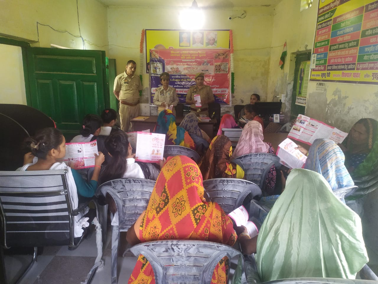 जनपद में थाना सि0अहीर क्षेत्रान्तर्गत मिशन शक्ति अभियान के तहत महिलाओं एवं बालिकाओं की गोष्ठी की गयी तथा उन्हें हेल्पलाइन नंबरों जैसे-1090 वूमेन पावर लाईन , 181 महिला हेल्पलाईन नंबर, 1076 मुख्यमंत्री हेल्पलाइन नम्बर ,102 स्वास्थ्य सेवा हेल्पलाइन नम्बर, 108 पुलिस आपातकालीन, 1930 साइबर हेल्पलाइन नंबर तथा थाने में स्थापित महिला हेल्पडैस्क की जानकारी दी गयी तथा उनकी समस्याओं को सुना गया तथा उन्हें सशक्त होने के लिये प्रेरित किया गया है। महिला अपराध से सम्बंधित पीडिताओं को जिला विधिक सेवा प्राधिकरण से सम्बंधित पैन्ल्ड अधिवक्ताओं से सहायता प्राप्त करने के बारे में बताया गया तथा महिलाओं को सरकार की वृद्धा एवं विधवा पैन्शन योजनाओं तथा लाडली बहना योजना एवं सुकन्या योजना जैसी विभिन्न सरकारी योजानाओं के बारे में जानकारी दी गयी। महिला स्वरोजगार/स्वालंबन/आत्मनिर्भर संबंधी जानकारी प्रदान की गयी । साथ ही महिलाओं को उनके अधिकारों के प्रति कानूनी एवं सामाजिक जागरुकता प्रदान की गयी ।